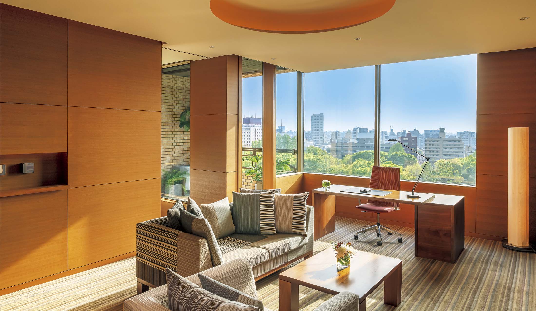 長年にわたってVIPに愛されているスイートも、改装が最小限にとどめられたエリアのひとつ。クラシックかつモダンなインテリアが今見ても新鮮な「アンバサダースイート」は、和の様式がもつ直線や陰影の美しさが取り入れられた、落ち着きに満ちた設え。都会のど真ん中にいることを、一瞬にして忘れさせてくれます。