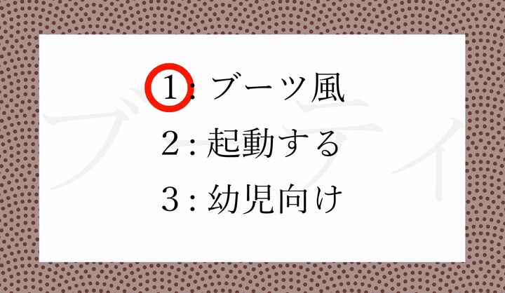 【問題2】「ブーティ」ってどういう意味?