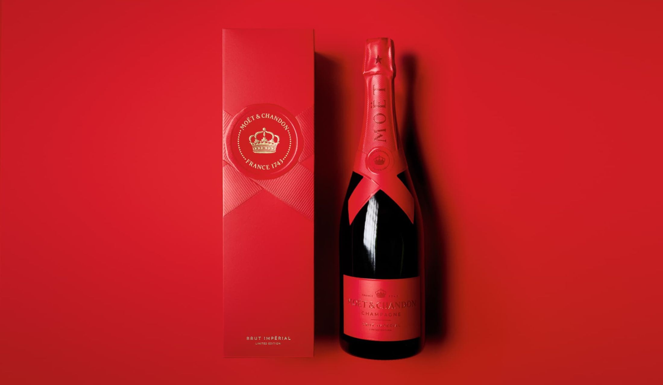 コレクションでは、モエ・エ・シャンドンを代表するブリュット(辛口)シャンパンである「モエ・エ・シャンドン モエ アンペリアル」が深紅の装いで登場。