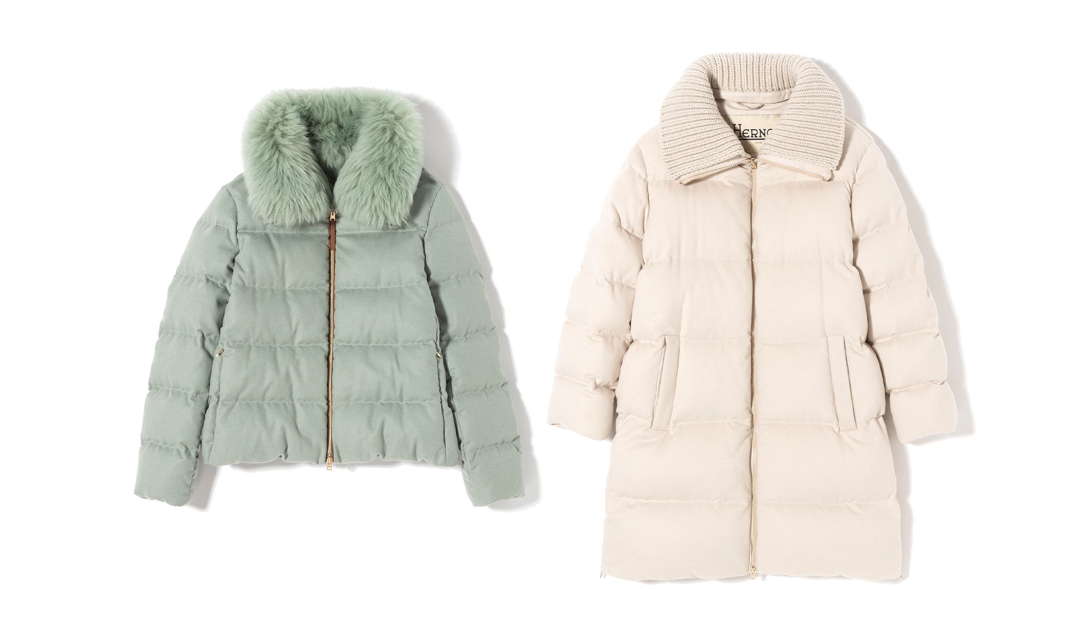 今回は「ヘルノ(HERNO)」から、環境に配慮されたPFCフリーの撥水加工が施された、シルクカシミア素材の2着にフォーカスしました。シルクが混紡されていることにより、カシミア100%と比較するとほんのりと柔らかな発色が特徴。機能性とラグジュアリーさを兼ね備えた人気の素材です。