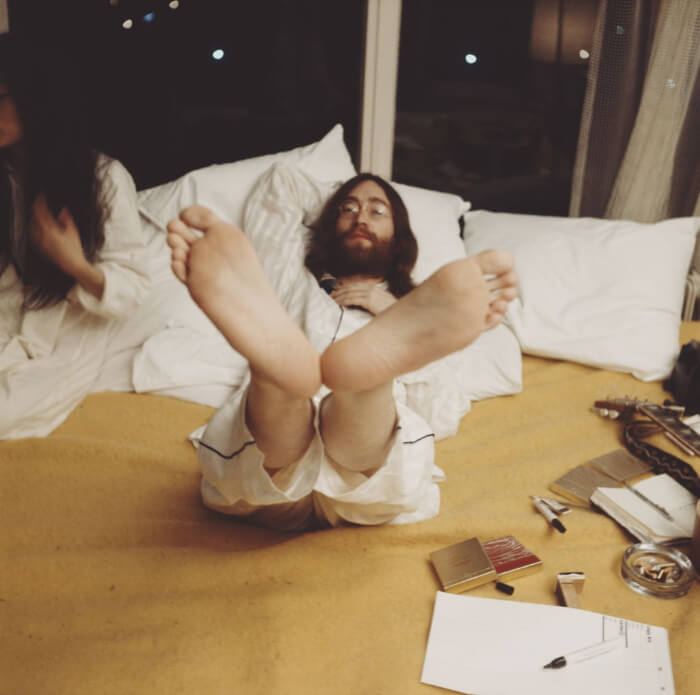 最初の妻シンシアと婚姻中にオノ・ヨーコと出会い、離婚後すぐに再婚したジョン・レノン。ふたりは夫婦としてだけでなくアーティストとしても共に活動し、特に反戦運動に熱心だったことも知られています。子どもは、シンシアとの間に長男ジュリアンを授かっており、オノ・ヨーコとの間には次男となるショーンが誕生しています。ここからは、「妻/息子」の写真をピックアップ。