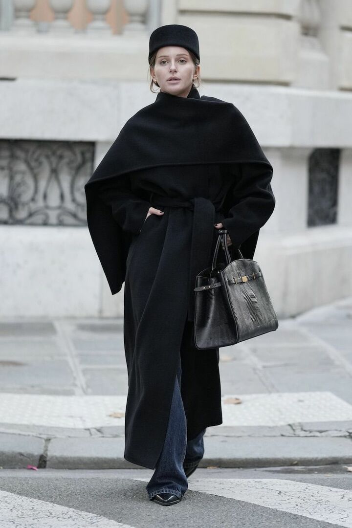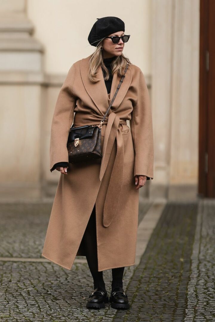 ブラックコーディネートを軸にしたら、ベージュのウールコートを重ねぬくもりを演出。物足りなくならないよう、仕上げにベレー帽を投入。丸いフォルムが優しいベージュと共鳴し、しなやかに着地しました。
