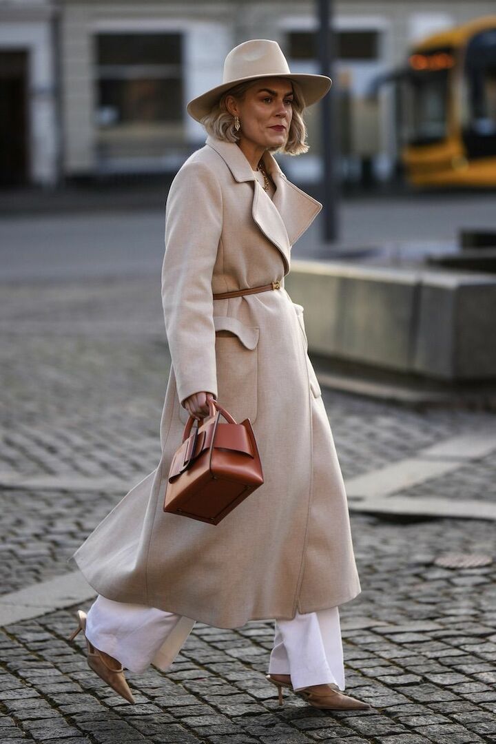 ウール素材のコートとハットを2点盛りすると、くどくなってしまうのも事実。そんなときは色をリンクさせ、一体感を意識すると好バランスにまとまります。ライトベージュと白のソフトな配色を、ブラウンで優しく引き締めて。