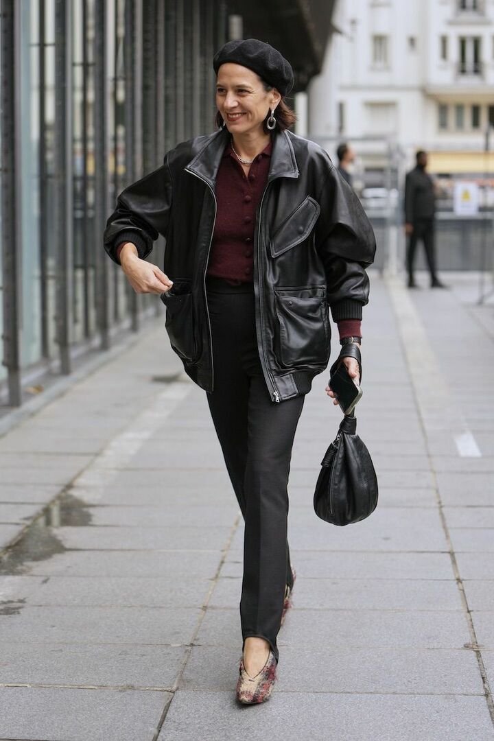 額をすっきり見せるベレー帽を使って、冬の装いを生き生きとフレッシュに見せて。黒とバーガンディの落ち着いた色合わせで大人らしさをしっかりキープ。