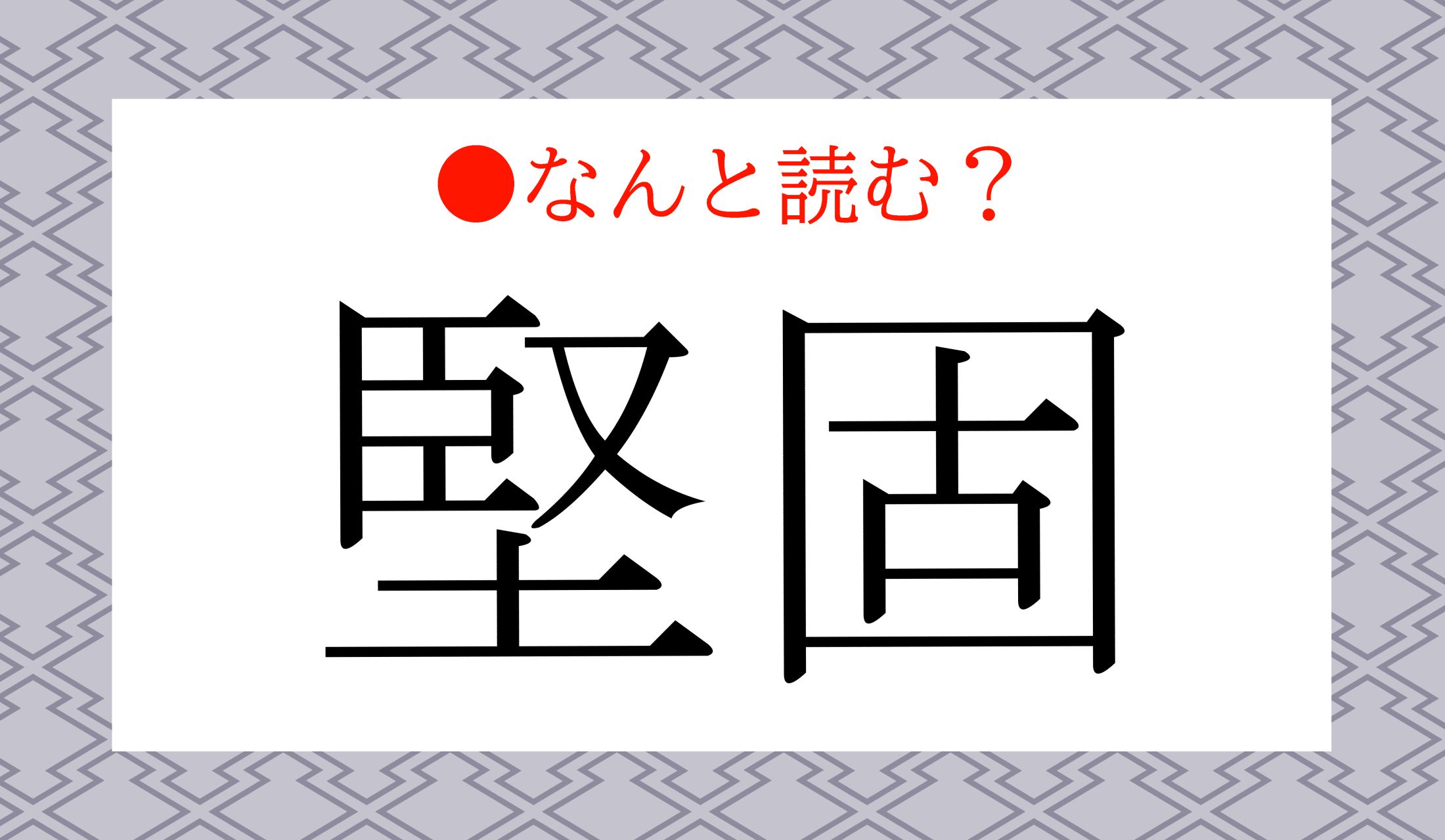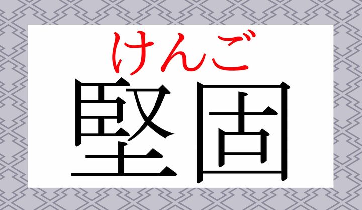 「堅牢堅固(けんろうけんご)…守りが非常に堅く、容易に破られたり動じたりしないさま」という四字熟語にも入る言葉です。「堅くて強いこと」を、物理的にも精神的にも表現できる熟語です。大人の会話でよく使われる表現ですので、正しく覚えておきましょう。