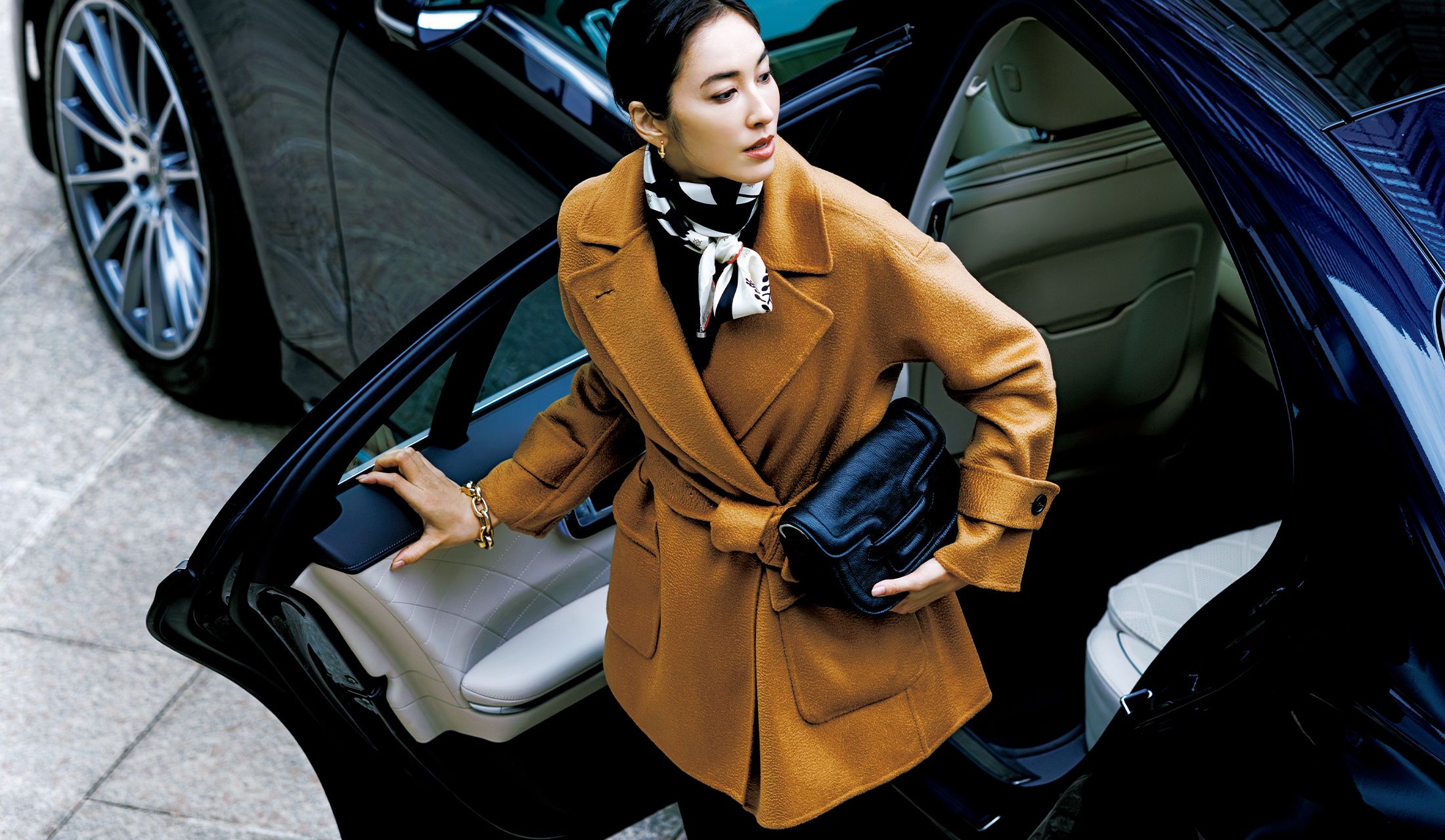 移動の車中、乗り降りする瞬間、オフィシャルなパーティや出張先に向かうとき…さまざまなシーンを快適かつ美しく乗り切るための装いを、多角的な視点で考察しました。