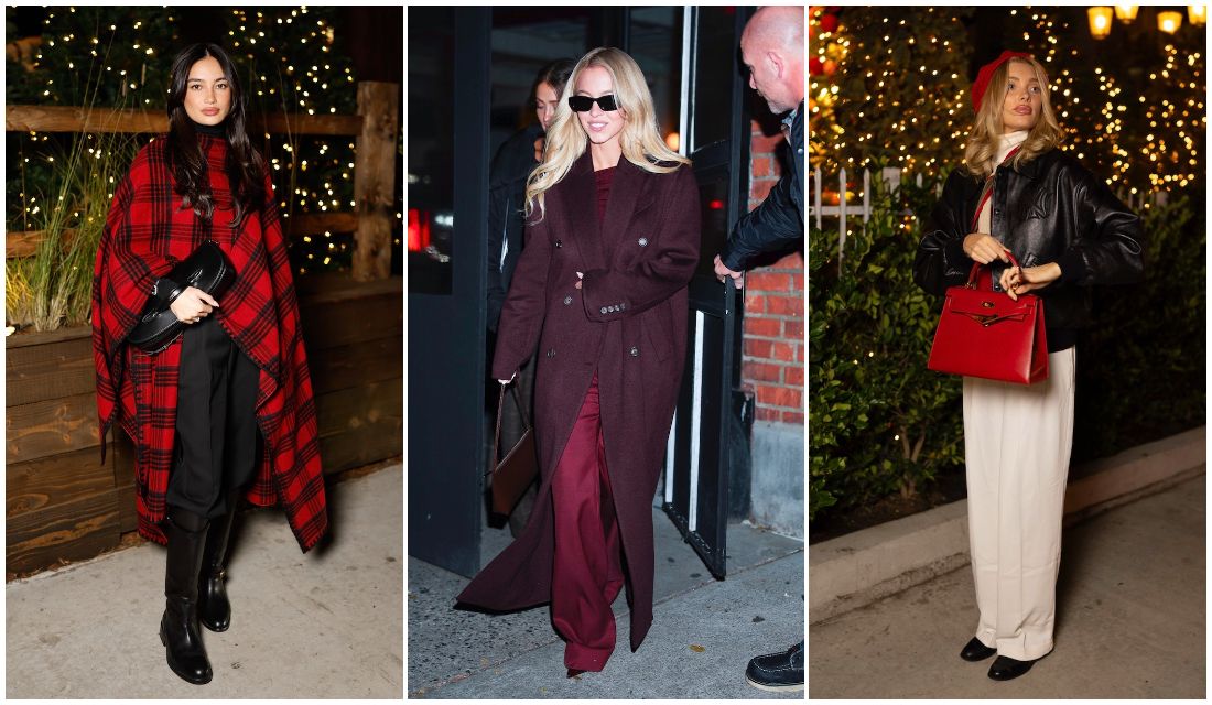2025年12月5日、エルザ・ホスクと同じイベントに姿を見せたケルシー・メリット。トップスからシューズまで黒で繋いだコーディネートは、端正なジョッキーブーツがトラッドなムードを添えています。そこへ鮮やかな赤のチェック柄ポンチョをふわりと重ね、ぬくもりとともにホリデーシーズンの特別感を表現。華やかさを備えながらも、ベースと同じ黒を含んだチェック柄だからこそ、トゥーマッチにならず洗練された印象にまとまっています。