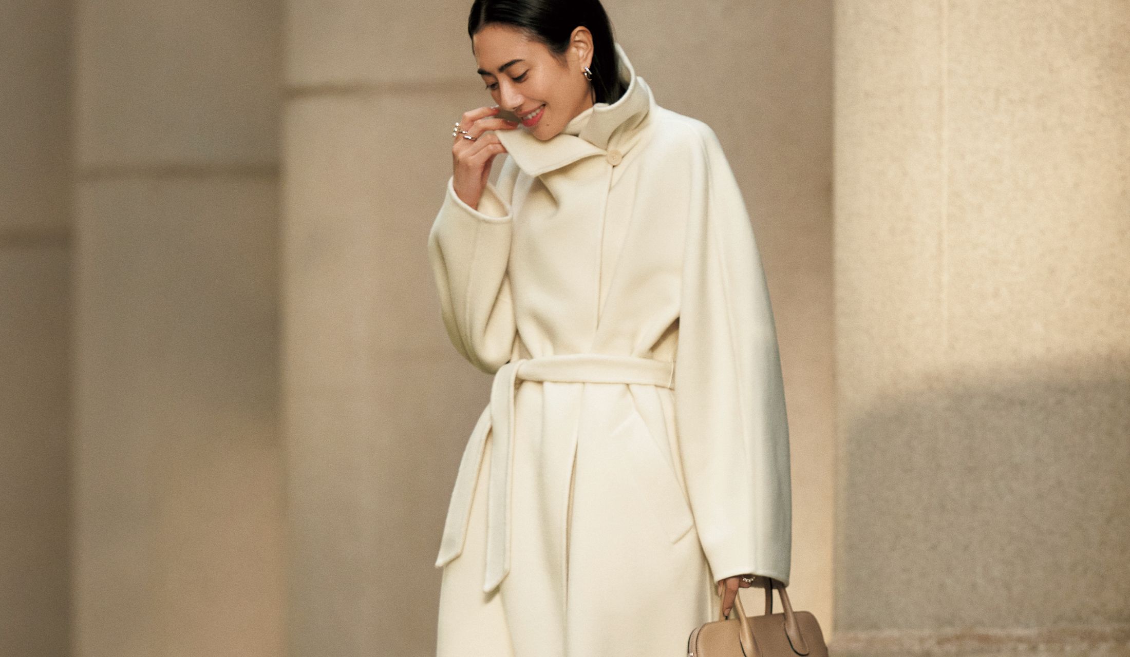 「Precious」1月号の特集【「洗練ラップコート」と、冬の街へ!】では、ふとした瞬間にドラマを生んでくれる、躍動感のある一着を提案しました。今回はその中から「マックスマーラ」のラップコートをご紹介します。