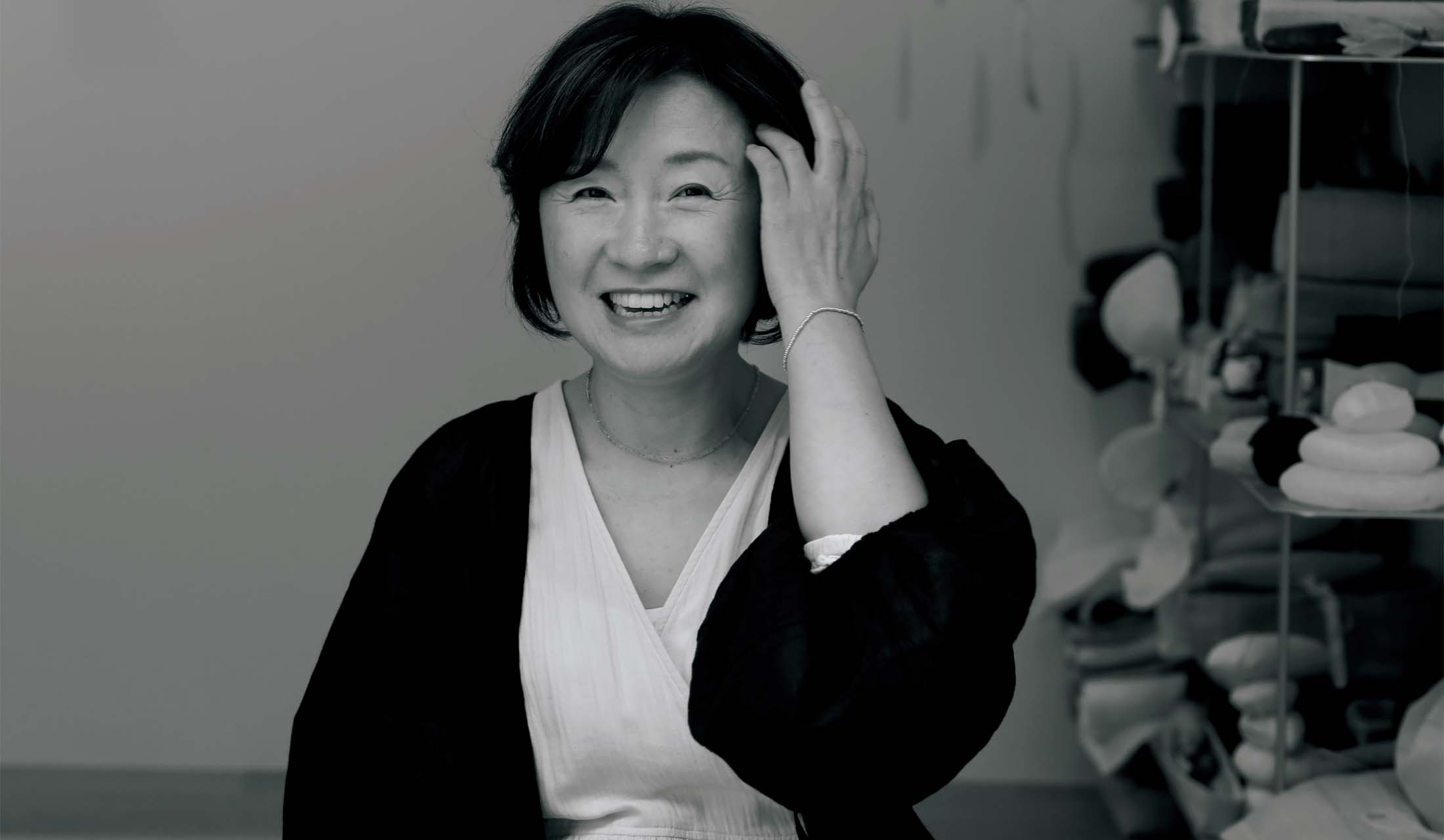 柔らかな布で固い石を表現してみたり、形のない空気の入れ物をつくってみたり。そんな逆説的な試みがもち味で、思考を深めてくれるような静かな佇まいが評判を呼んでいる。徹底してこだわっているのは「白」。布がもつ無数の白の階調を自在に操りながら、まるで韓国の白磁のような、静謐な美しさを具現化している。