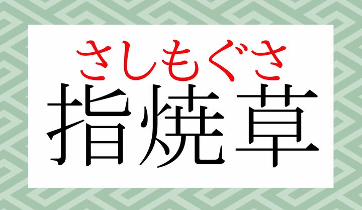 お灸に使う「もぐさ」は、この「指焼草(さしもぐさ)」のことです。「指でつまんで燃やす・焼く草」という構成の、ヨモギの別名です。和歌に使われる際には「燃えやすい」という特徴から、恋愛をテーマにした歌の掛詞(かけことば)などによく使われます。