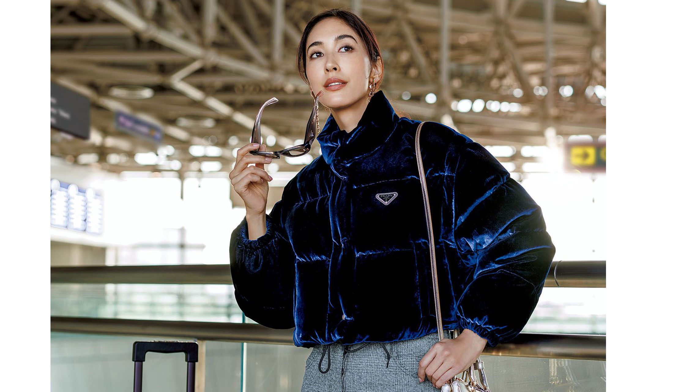 ベルベットの柔らかな風合いが、ネイビーの美しさと、ふっくらとしたボリュームを引き立てるダウンジャケット。コンパクト丈が今年らしく、取り外し可能な袖を外すと、ジレにもなる2ウェイ仕様。上品な光沢で、カジュアルが格上げされるだけでなく、ドレスに合わせても、ボレロのようなエレガンスが漂う。