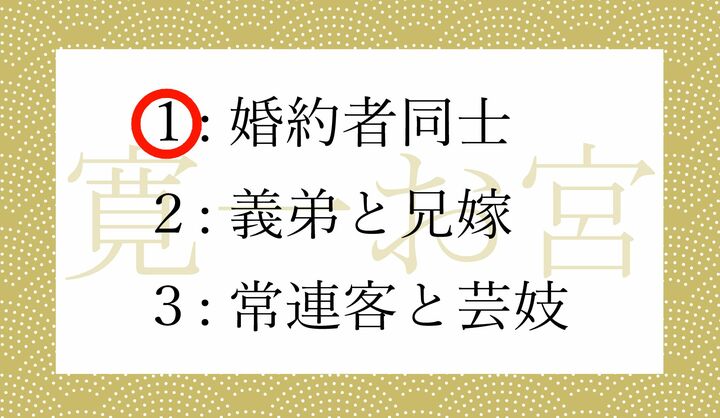 正解は… 1:婚約者同士 です。