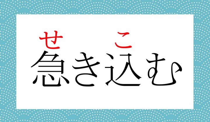 「急(せ)く」は「急いでしようと焦る」ことで、これが「込む」で強められた言葉です。「咳が続けて出る」の「咳込む」とは別の言葉で、「非常に急いであわてふためいた様子」を指します。