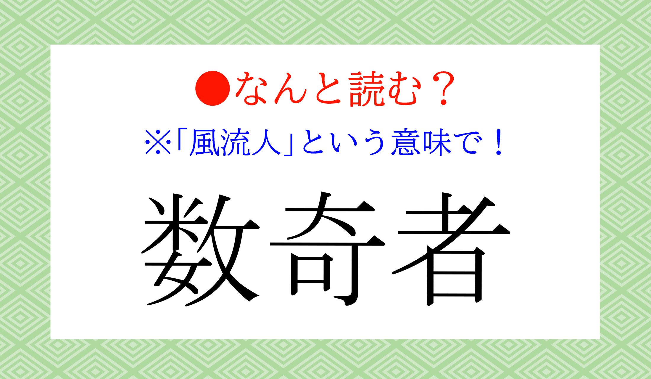 「風流を解する人」という意味の「数奇者」の読み方をお答えください。