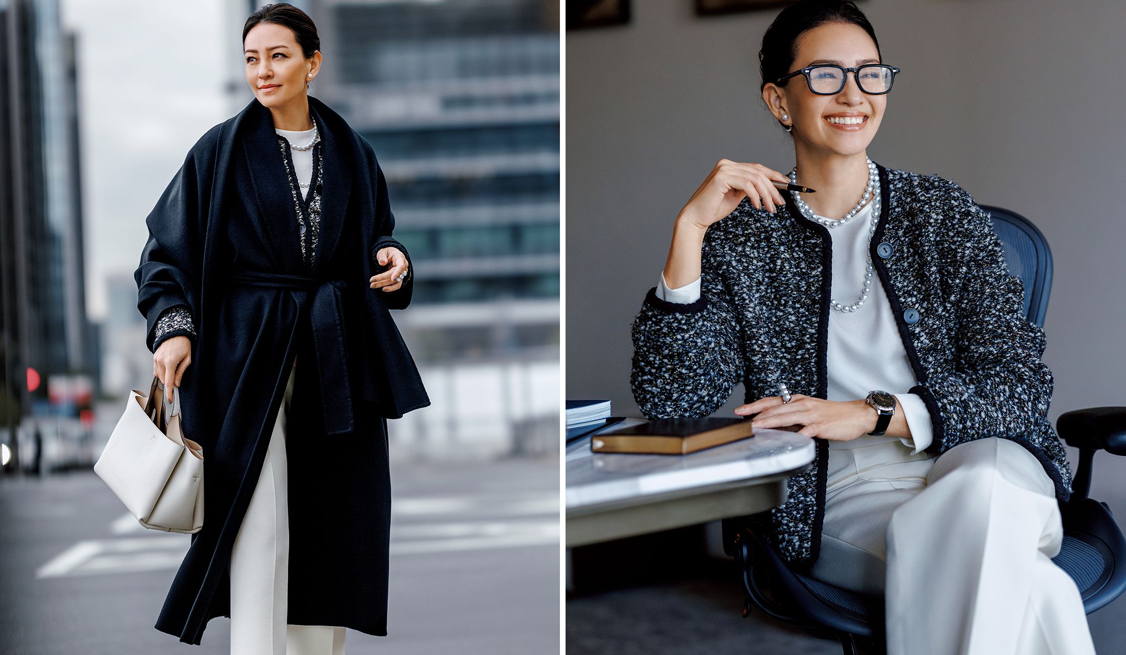 雑誌「Precious」2月号では【寒暖差に負けない「ワーキング・スタイル」の最適解】と題し、移動中も仕事中も快適に過ごせる着こなしを目指して、プレシャスキャリアに最適な仕事服を考えました。