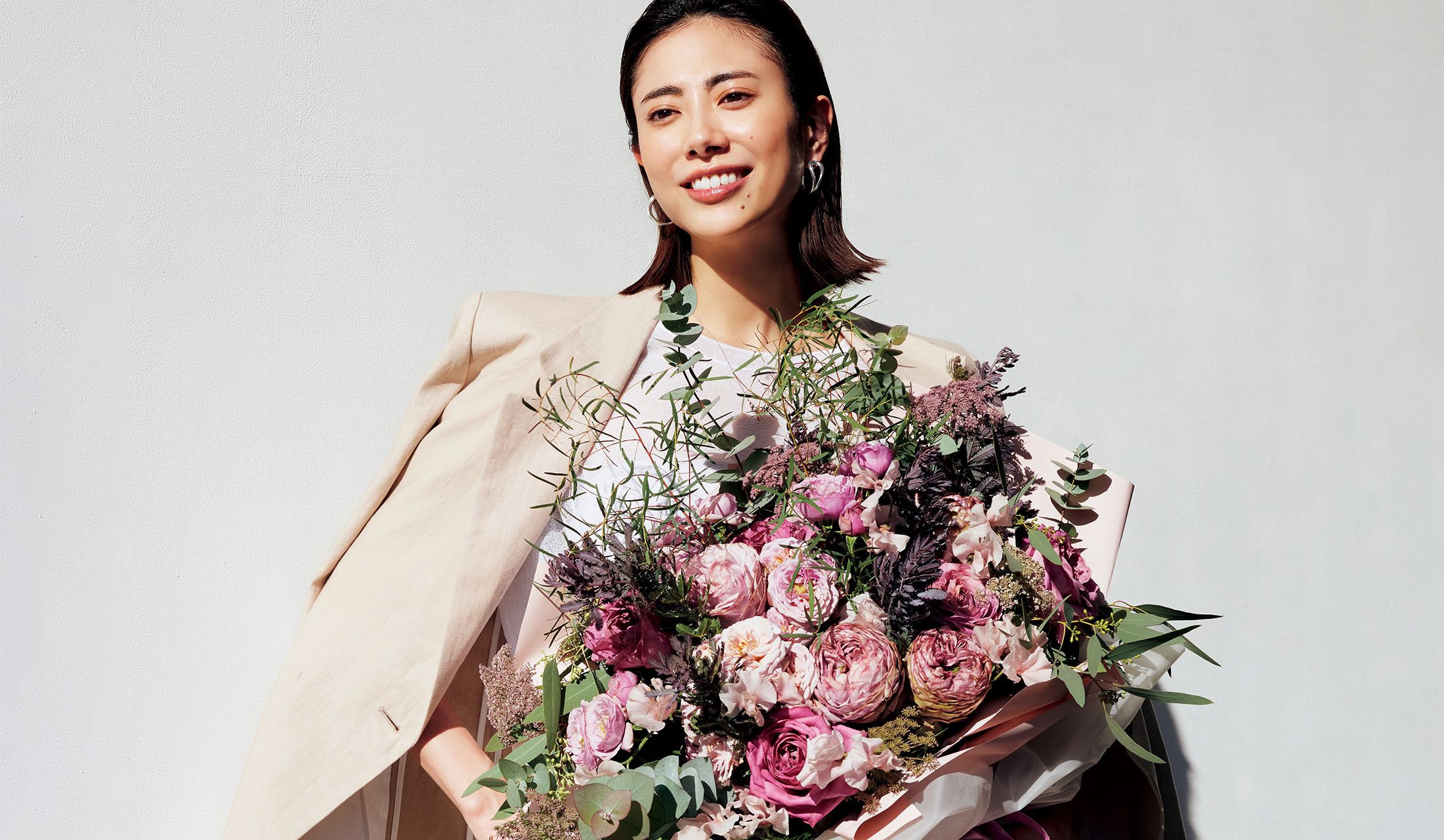 「手土産は自分ではあまり買わないような少し特別なものを選びます。お祝いにはバラの花束。専門店らしい可憐な品種を季節の花と組み合わせたアレンジは、他とかぶらないセンスも素敵です」(友利 新さん)
