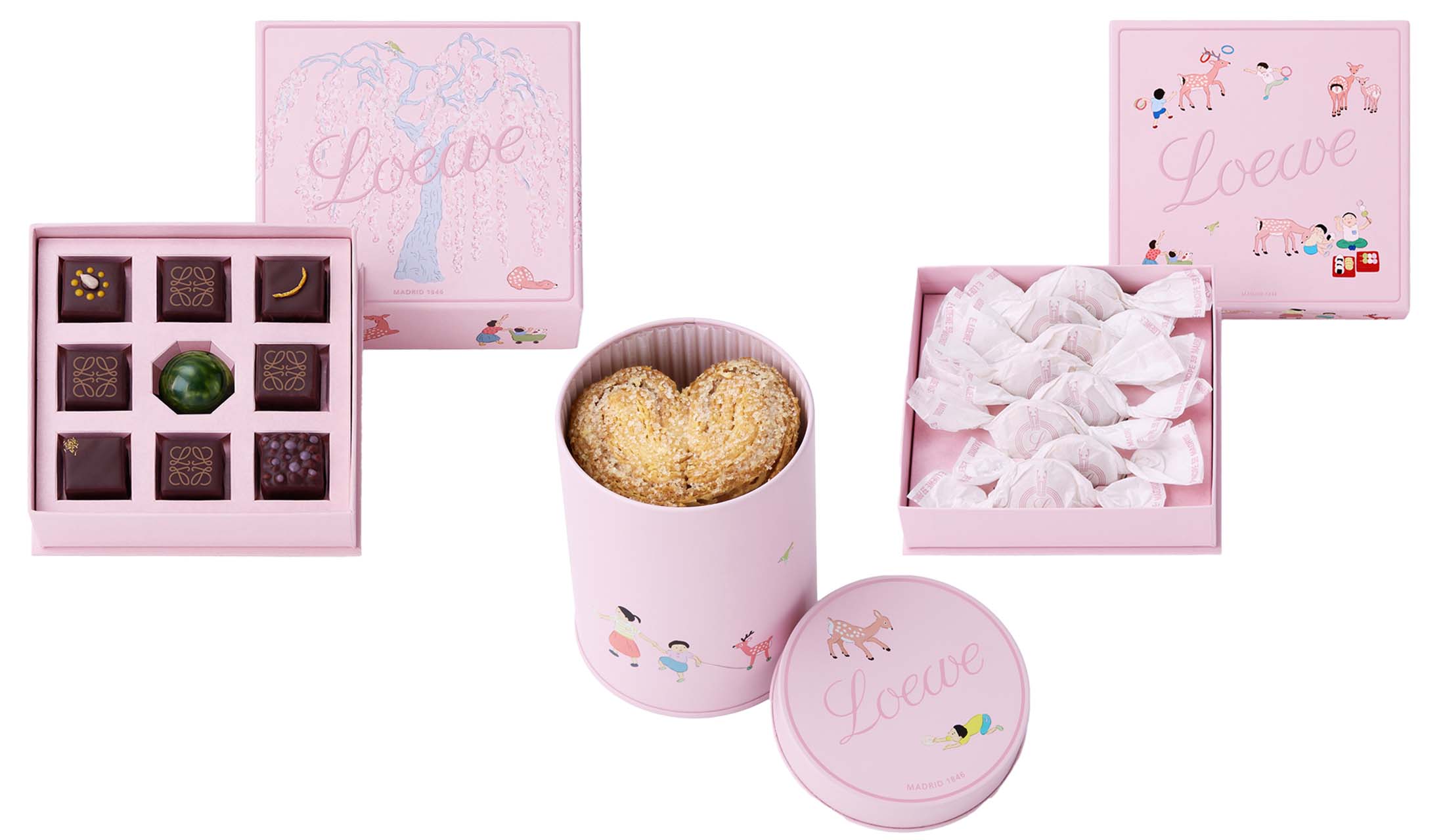 今回のスイーツギフトは、京都の陶芸制作ユニット「スナ・フジタ」とコラボレーションしたカプセルコレクションの発売を記念して登場したもの。春を呼び込む優美なピンクと愛らしいモチーフに彩られた限定のギフトボックにセットされた全3種が揃いました。