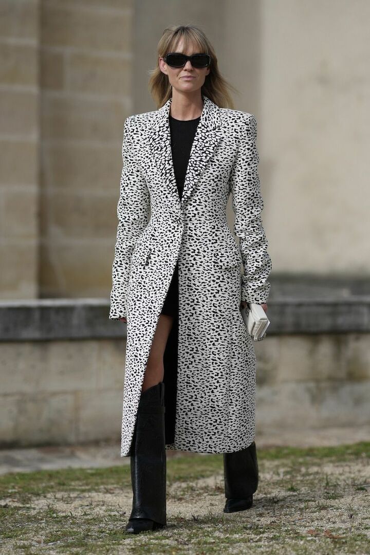 リトルブラックドレスとアニマル柄は、芯のある女性像の方程式。ミニマルなワンピースを土台にしたら、黒のカバードロングブーツとウエストが絞られたアニマル柄コートをレイヤード。シルエットで魅せ、静かな強さを滲ませて。
