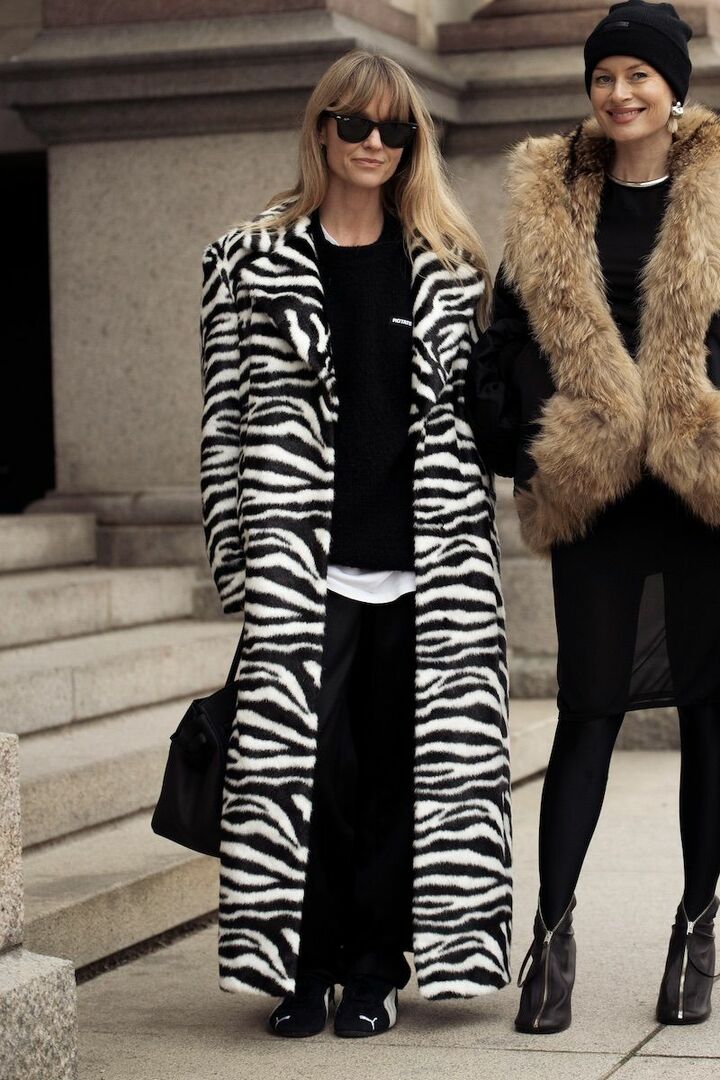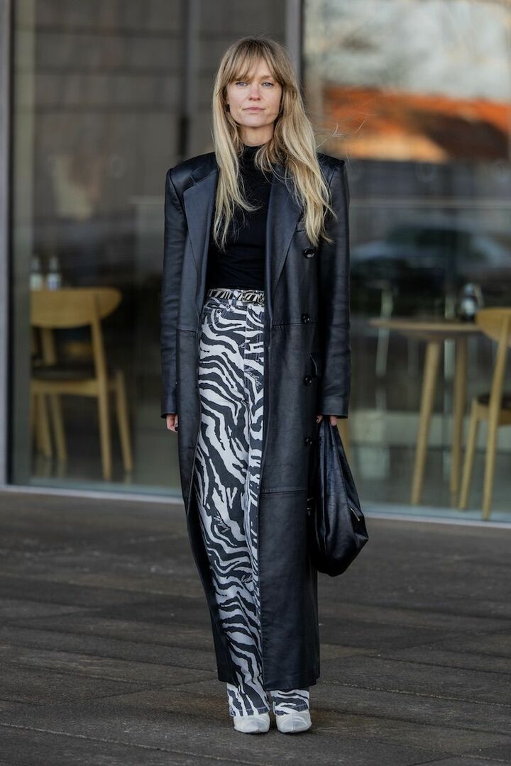 ゼブラ柄のマキシコートを主役にした、都会派ブラックコーディネート。そっと忍ばせた白カットソーで抜け感をつくり、強さのなかにやわらかな余白を添えました。