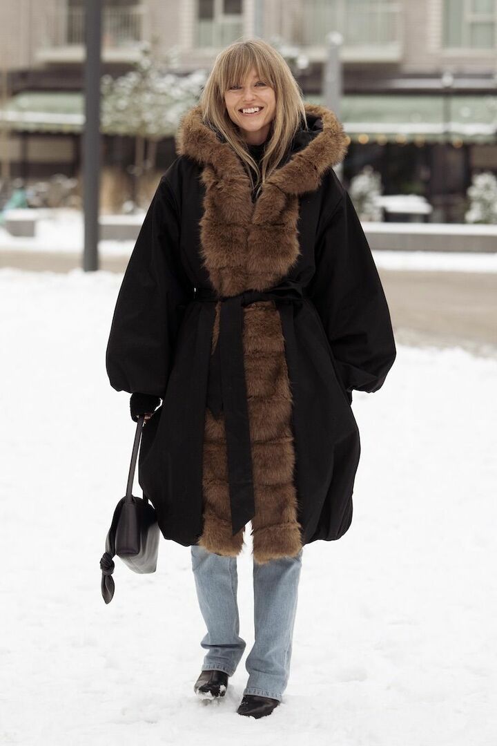 ボリュームのあるファートリムコートは、ウエストをきゅっとマークしつつ、スリムなデニムを合わせてメリハリを生み出して。重厚な存在に曲線を与え、フェミニンへと昇華。
