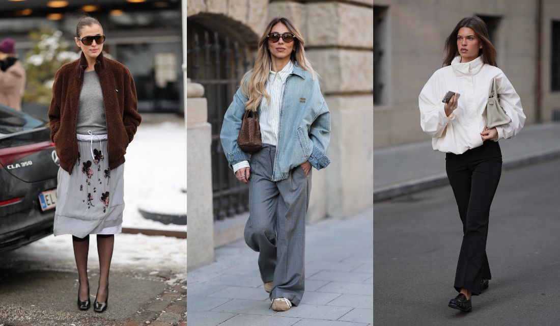 2026年1月28日、コペンハーゲン ファッションウィーク開催中、雪が残る街中で目を引いたのは、インフルエンサー、ダーヤ・バラニクの着こなしです。フリースブルゾンがぬくもりを感じさせる一方で、黒×ピンクのフラワー刺繍スカートが春の訪れを予感させます。トップスとスカートをライトグレーで繋ぎ、クリーンさを演出。黒のシアーハイソックスとツヤのあるパンプスのセンシュアルな足元で、スカートスタイルを引き締め都会的に昇華。冬の名残りを感じるブラウンと、身軽なグレー。ふたつの季節を共存させた、端境期らしい着こなしです。