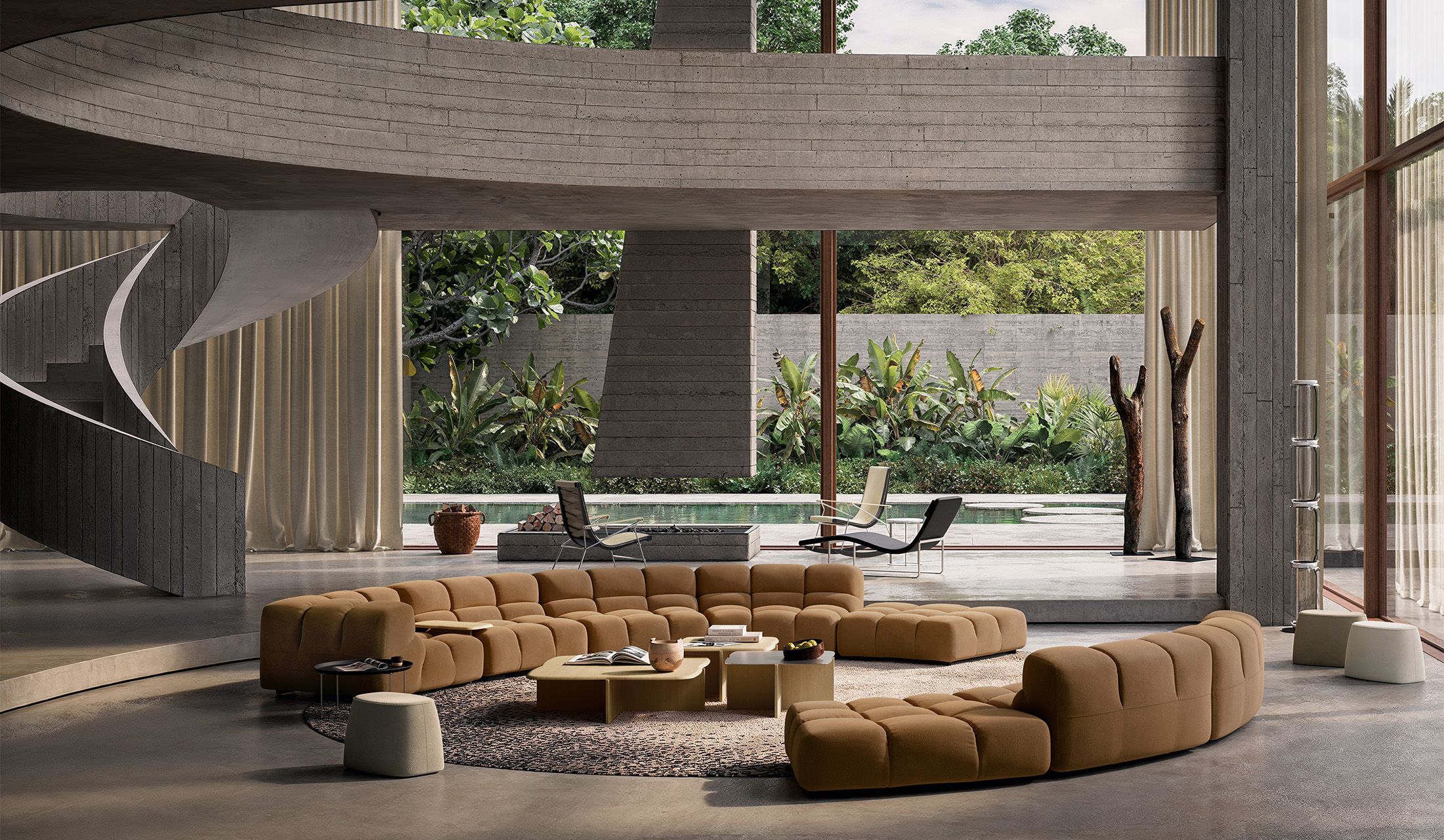 身体をやさしく包み込む、繭のようなソファシステム「Cocùn(コクーン)」。幾何学的な造形が美しい5種のモジュールを自在に組み合わせることで、多彩なレイアウトが可能です。人を迎え入れるリビングから、ひとりの時間を過ごすパーソナルな空間まで、それぞれのくつろぎのひとときに寄り添います。