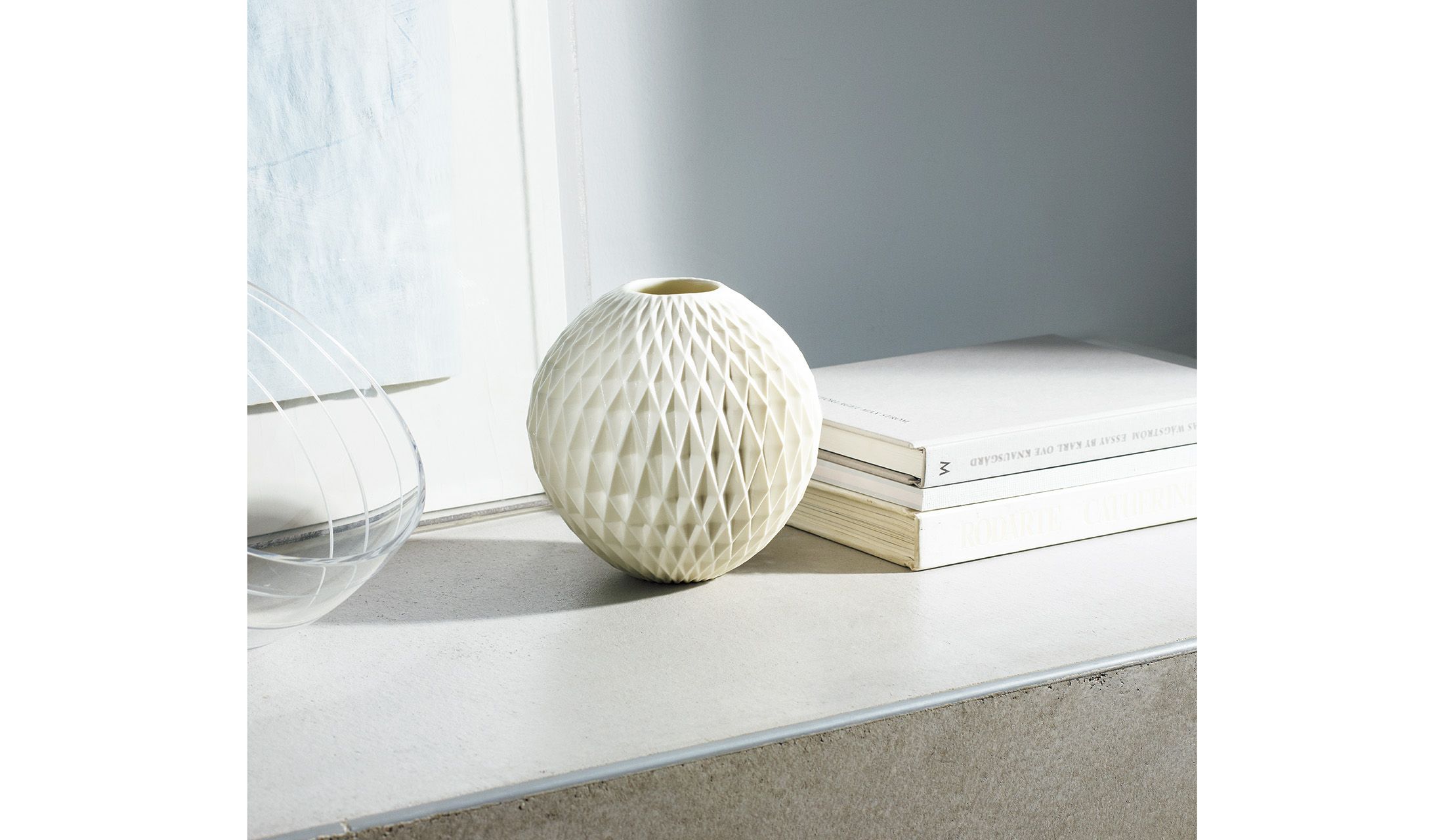 コンテンポラリーな風貌でありながら、多彩な表情をのぞかせるオブジェは、温泉旅行で訪れた金沢の地で出合ったもの。伝統的な陶芸の技術と建築のテクノロジーを掛け合わせたクリエイションを手掛ける奈良祐希さんの工房に足を運び、制作のエピソードをじっくりうかがえたのも、特別な思い出となりました。旅先での記憶と作者の想いが重なった、曲線を描くオブジェは、暮らしを彩る愛おしい存在です」