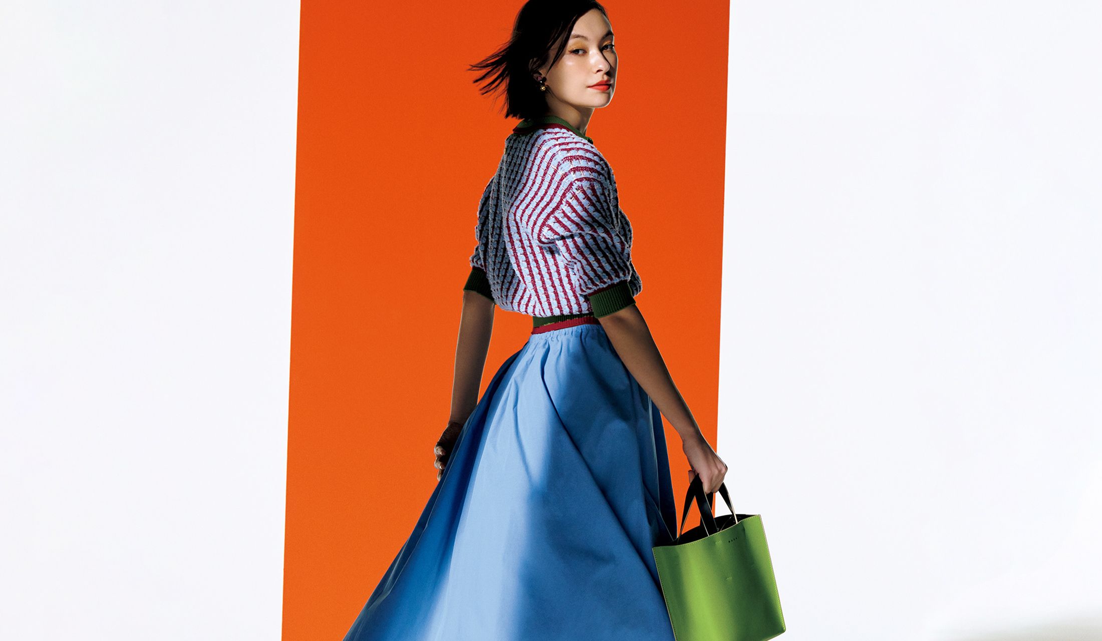 今回はその中から、「マルニ」のややスモーキーなパステルトーンでまとめた大人が楽しめるガーリースタイルをご紹介します。