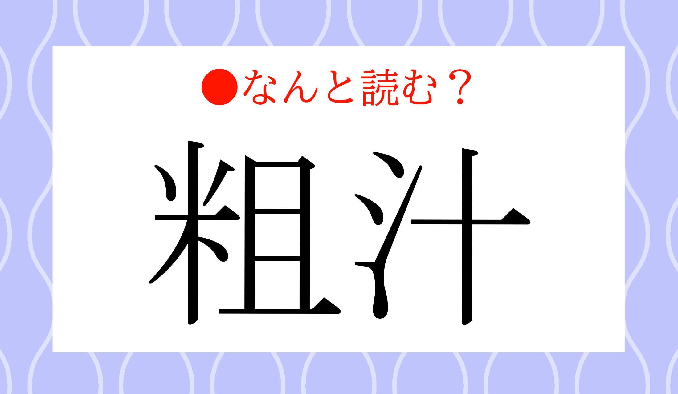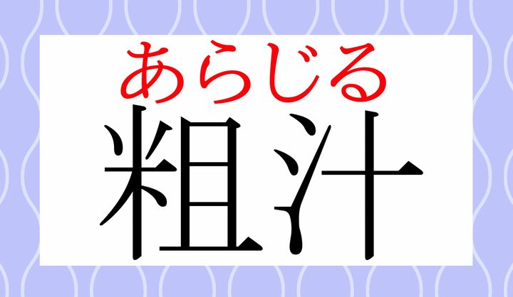 魚をさばいた際に出る、身の付いた骨や頭と一緒にぶつ切りした部分を「アラ」と呼びますね。あの漢字表記が「粗(あら)」で、「粗」の常用漢字の訓読み「粗(あら)い」を用いた読み方です。「粗汁(あらじる)」は、慣用的に「荒汁」などと書かれることもございますが、辞書には「粗汁」の表記で掲載されております。