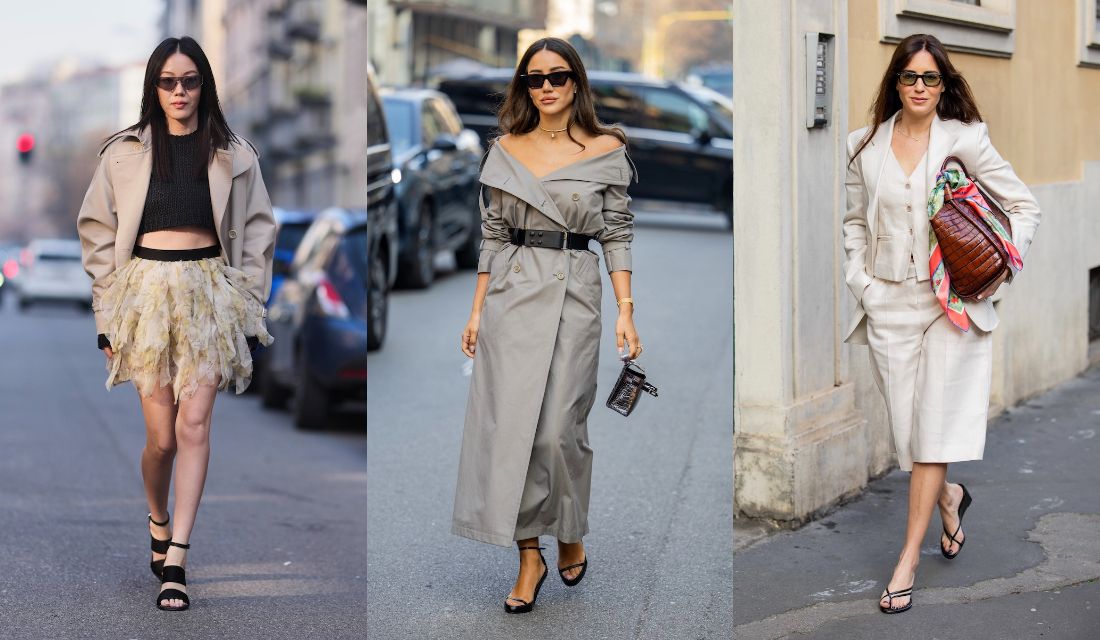 インフルエンサーのジェニー・ツァンは、定番のベージュにキレのよさを足し、柔らかさのなかにかっこよさを共存させました。ショート丈のトレンチコートに、花びらが重なったような繊細シアーのミニスカートを合わせ、ロマンティックなムードへ。風をはらむエアリーな質感が、装いに春らしい軽やかさをもたらします。スカートのウエストバンドの色を拾って、トップスとサンダルもおなじカラーをセレクト。クロップド丈のトップスでヘルシーに肌見せし、シャープな切れ味をプラス。