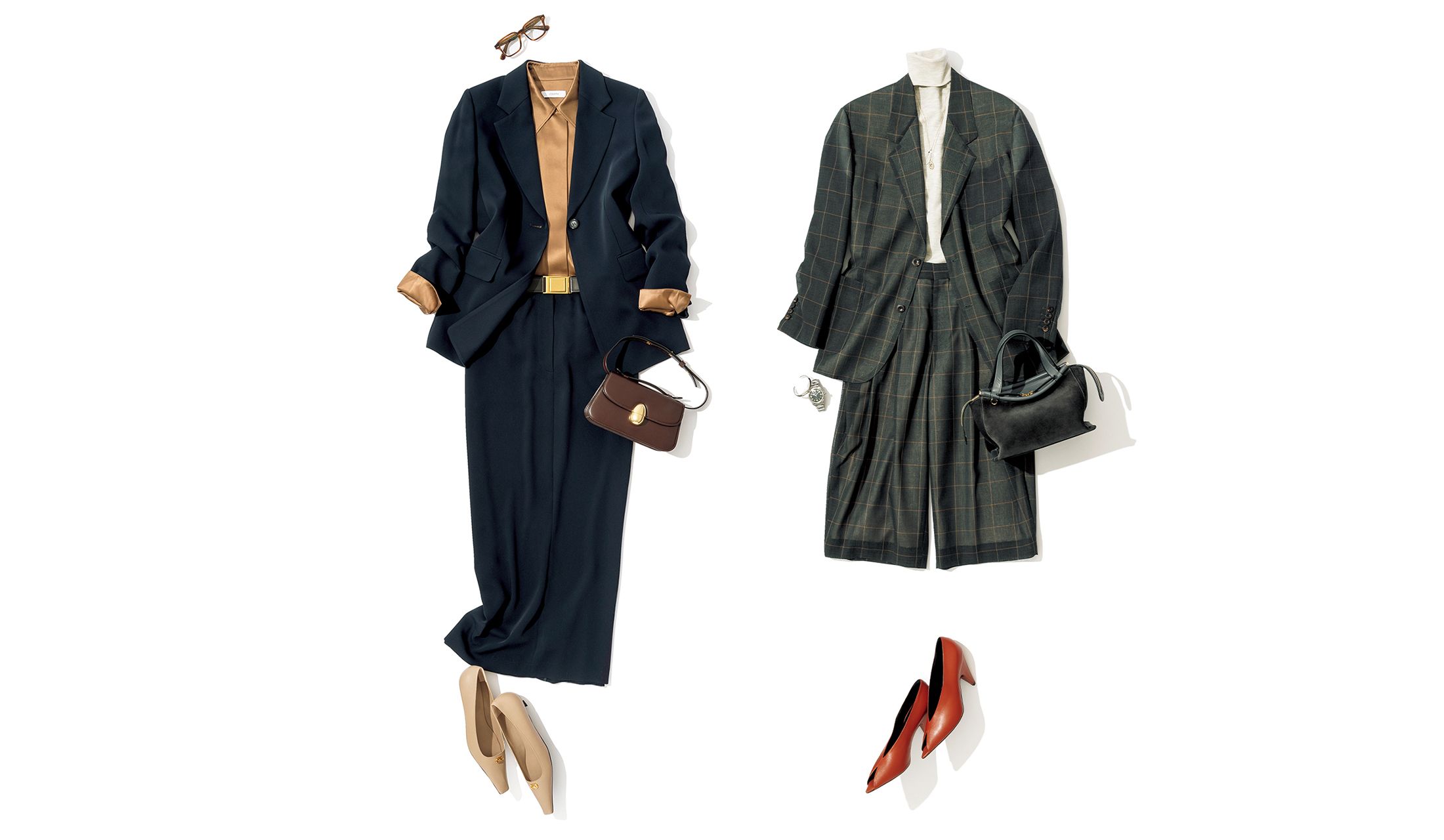仕事スタイルの定番としてだけでなく、トレンドアイテムとしても注目のジャケット。代表的なデザイン「端正テーラード」と「華やぎノーカラー」を今の視点で選ぶなら?