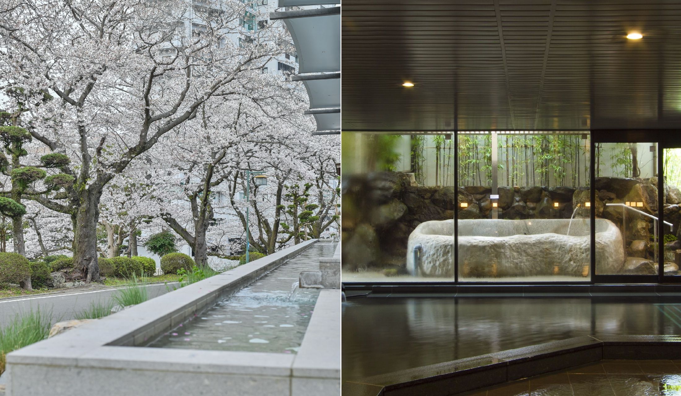その嬉野は今がまさに春の盛り。温泉街を流れる嬉野川沿いに桜が咲き誇り、柔らかな光に包まれた景色が訪れる人を出迎えます。そうしたうららかな情景に寄り添うように佇むのが「旅館 吉田屋」。嬉野川に面したモダンな宿で、美人の湯をゆったりと楽しめる一軒です。