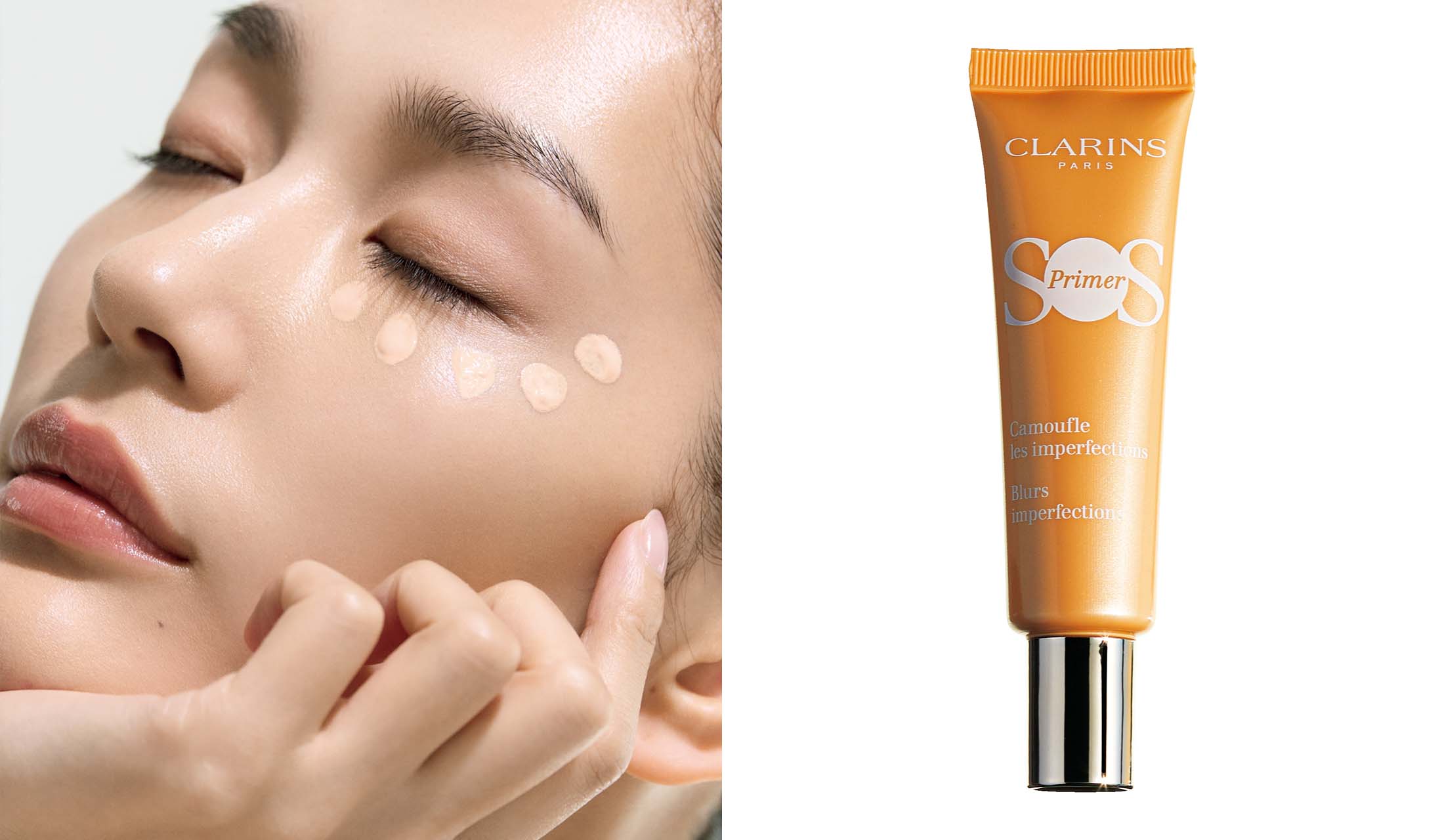 そして、乾きやすい大人肌に最適なのが「クラランス」のオレンジ下地。植物由来成分に加え、肌の常在菌バランスに着目した先進処方を採用し、皮膚の薄い目の下に使っても乾きにくく、ヨレにくいのが魅力。ケアと補正を同時に叶える、高機能のオレンジ下地です。