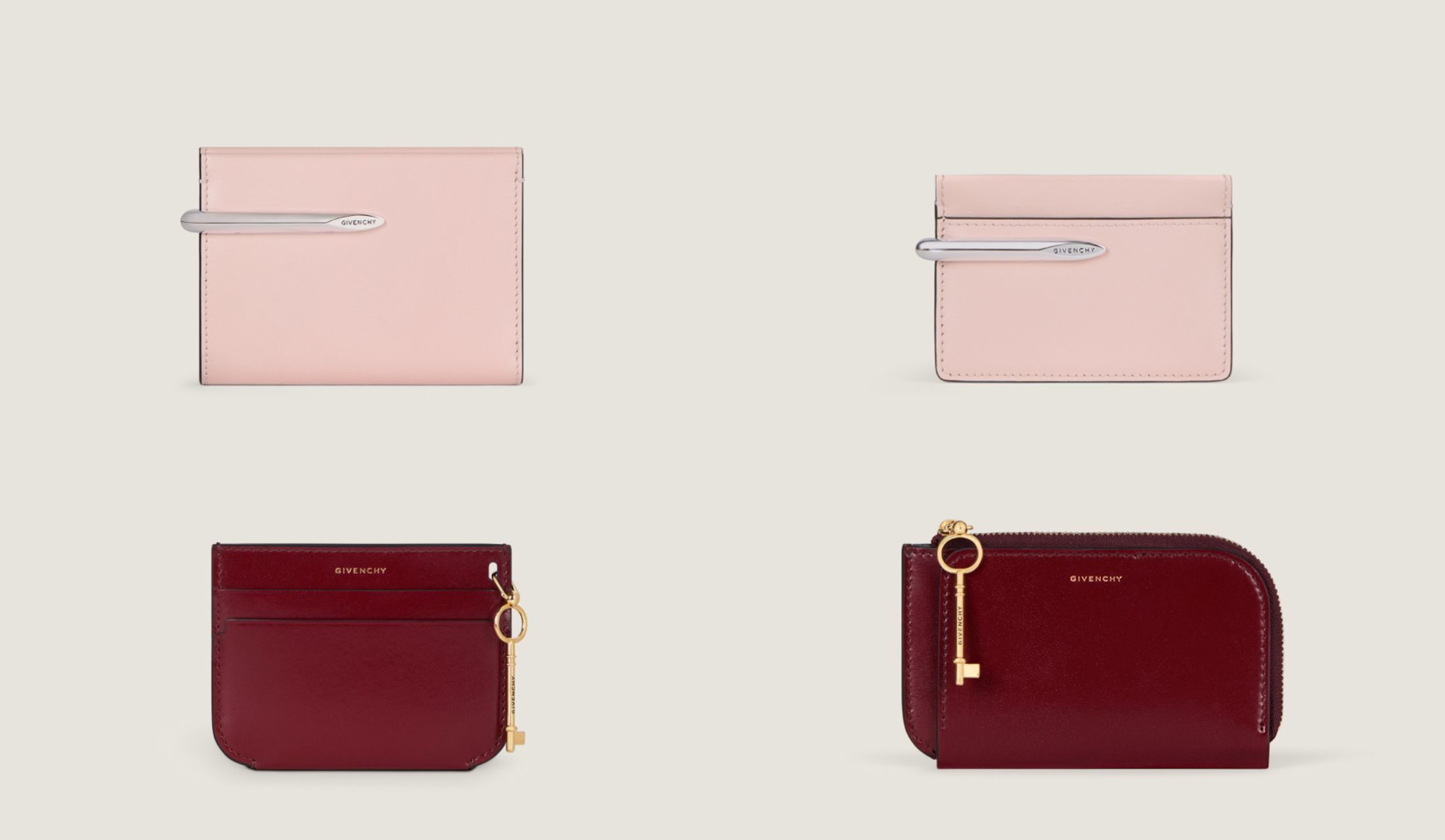 本日は、「GIVENCHY(ジバンシィ)」より新作スモールレザーグッズをクローズアップ。人気バッグの「ピンチ」シリーズと「ラッキーチャーム」シリーズより、プレイフルなアクセントが目を惹くウォレットやカードケース、計4点を紐解いていきましょう。