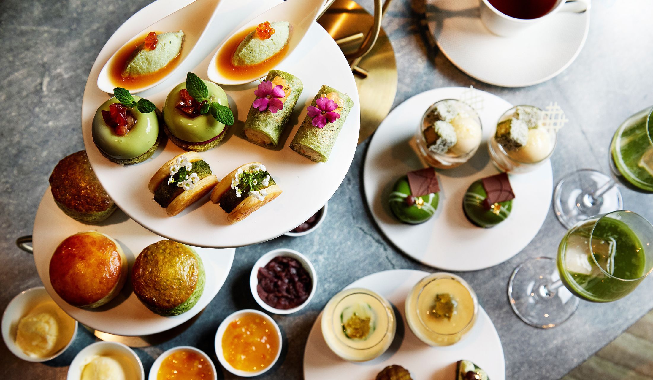 期間限定の「早緑(さみどり)のアフタヌーンティー」は、短い若葉の季節だけに提供され、お茶席用の良質な宇治抹茶を贅沢に使った品々を味わえます。