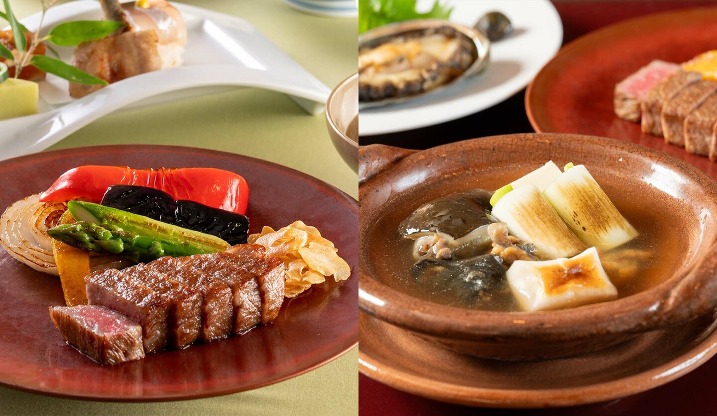 「鉄板焼 みや美」で焼き上げた上質な黒毛和牛をメニューに加え、上品な旨味をもつ鮎魚女(あいなめ)を用いた吸い物など、初夏の爽やかな風情を感じる会席が、ランチとディナーで堪能できます。
