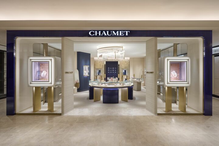 245年にわたる歴史をもち、世界のロイヤルファミリーにも愛され続けているパリのハイジュエラー「ショーメ」。新しくなったブティックは、メゾンのアイデンティティを象徴する「サファイアブルー」のファサードが印象的な、開放感あふれる空間です。豊かな自然のモチーフを、現代的な感性で鮮やかなデザインへと昇華させた壁面のフレスコ画も圧巻。伝統的なティアラのモチーフが飾られた個室も備えた贅沢な店内で、ゆったりとくつろぎながら商品を選ぶことができます。