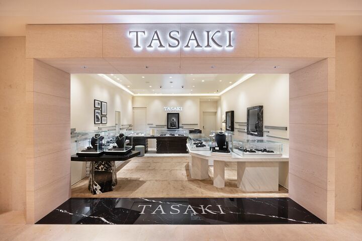 「TASAKI(タサキ)」は今回のリニューアルで、ブランドにとって初となる新たなコンセプトを採用した店舗デザインに生まれ変わりました。ファサードや店内には、自然素材の質感を活かしたマテリアルを印象的に採用し、静かで品のある佇まいを演出。ショーケースや床には黒を基調とした大理石などの石材を用い、ジュエリーの輝きがより際立つよう、シンプルでメリハリのある構成に。「TASAKI」らしい美意識や価値観の中で、ジュエリーそのものの魅力を存分に堪能できます。