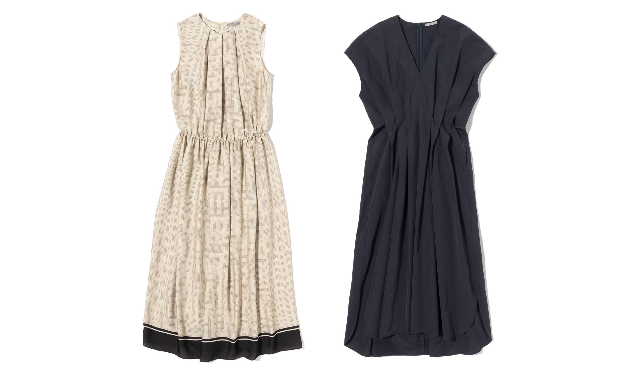 体のラインを強調しすぎずメリハリを効かせた、「セオリーリュクス」の新作ワンピース。品よく肌見せを叶えるノースリーブやフレンチスリーブは、レイヤードを楽しみやすいのも魅力です。