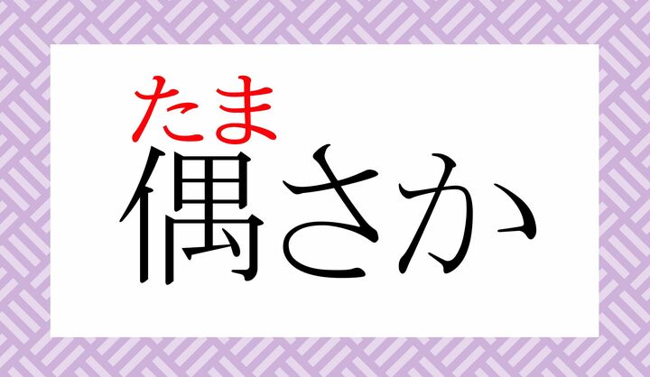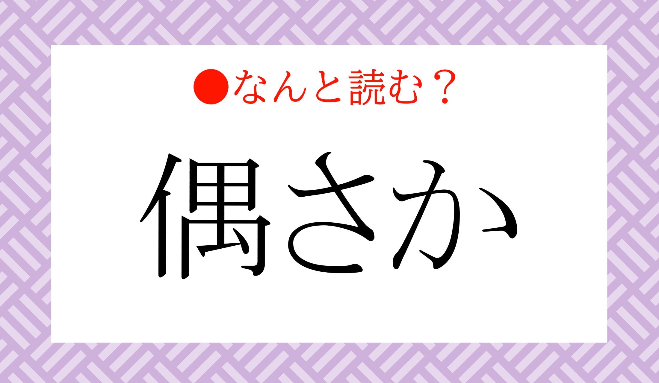 「偶」は漢字単体としては「たまたま」と読みますが、意訳的に「偶(たま)に」「偶々(たまたま)」など、「偶(たま)さか」と同じ法則の読み方をする例が多数ございます。「さか」はもともと「状態を表す接尾語」で、「おごそか」「おろそか」などの「そか」と同じ役割です。