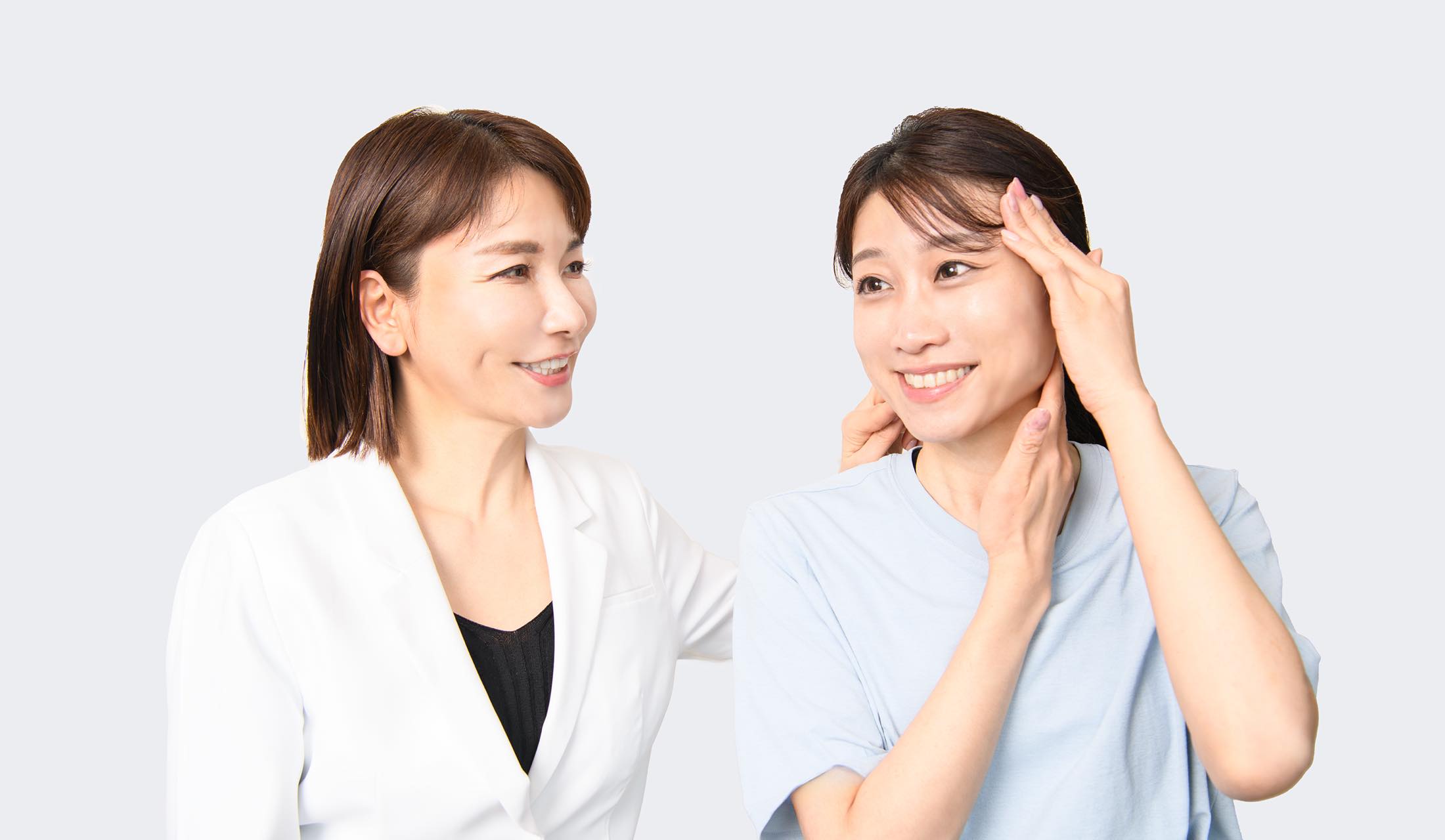 こめかみの少し上あたりに広がる側頭筋は、食事中の咀嚼や長時間のパソコン、スマートフォン使用で緊張しやすい筋肉です。この側頭筋が硬くなると、頬の表情筋を引き下げる力が働き、ほうれい線を深くする原因になりやすいのだそう。