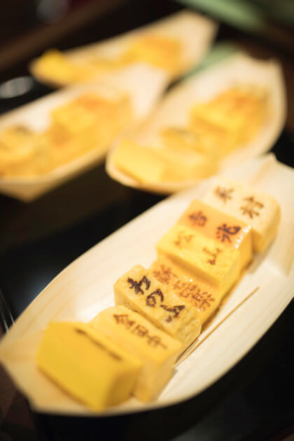 新橋の料亭が、この日のためだけに腕をふるった豪華なお弁当や鮨折が、会場内で供されます。いずれも伝統に基づきつつも、艶やかな芸者衆に負けじとも劣らない、見た目でも、舌でも楽しめるものばかり。(※すべて別途予約必須)