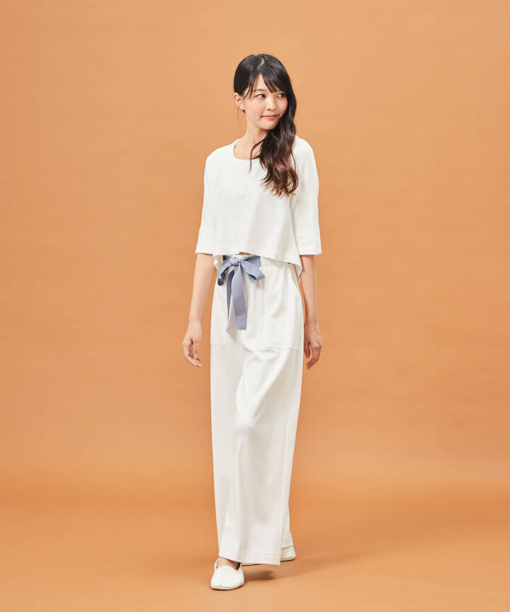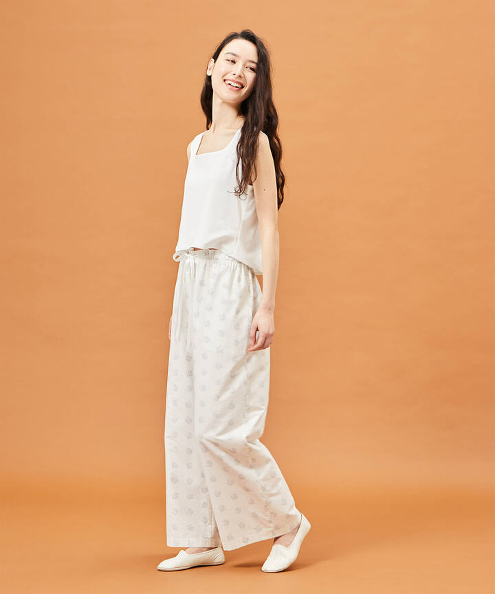 「トレンドにもなっているワイドパンツシリーズも人気です。体のラインを見せず、スタイリッシュに着こなせて嬉しいというお声が多いです。特に暑い日には、世界で数%未満しかとることのできないスーピマコットンを100%使用し、サテン組織で丁寧に織った生地でつくられたワイドパンツの着心地が大変良く、手放せないアイテムとなっているようです」(Foo Tokyo 担当者)