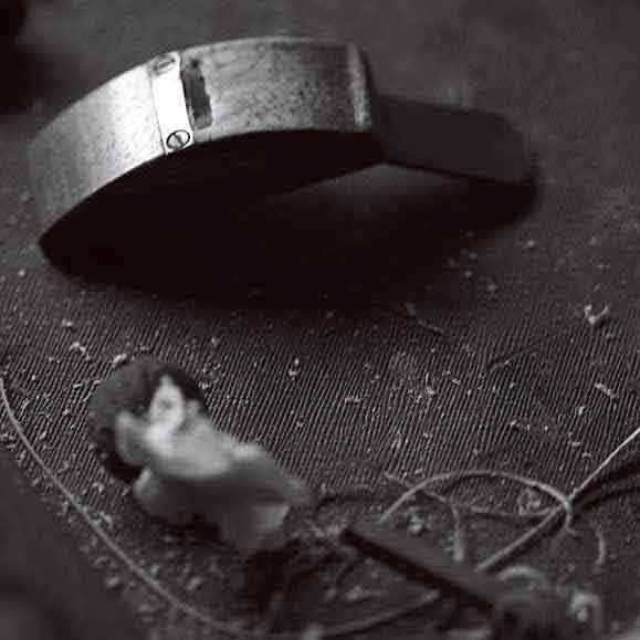 靴べらには珍しいコードバンは、高級ランドセルをつくってきた大峽製鞄にとっては伝統の素材でもある。コードバンとは馬の臀部の革だが、使うのは、繊維が細かく密になった部分だけ。1頭からランドセルのふたがふたつ分採れるかどうかという希少さである。