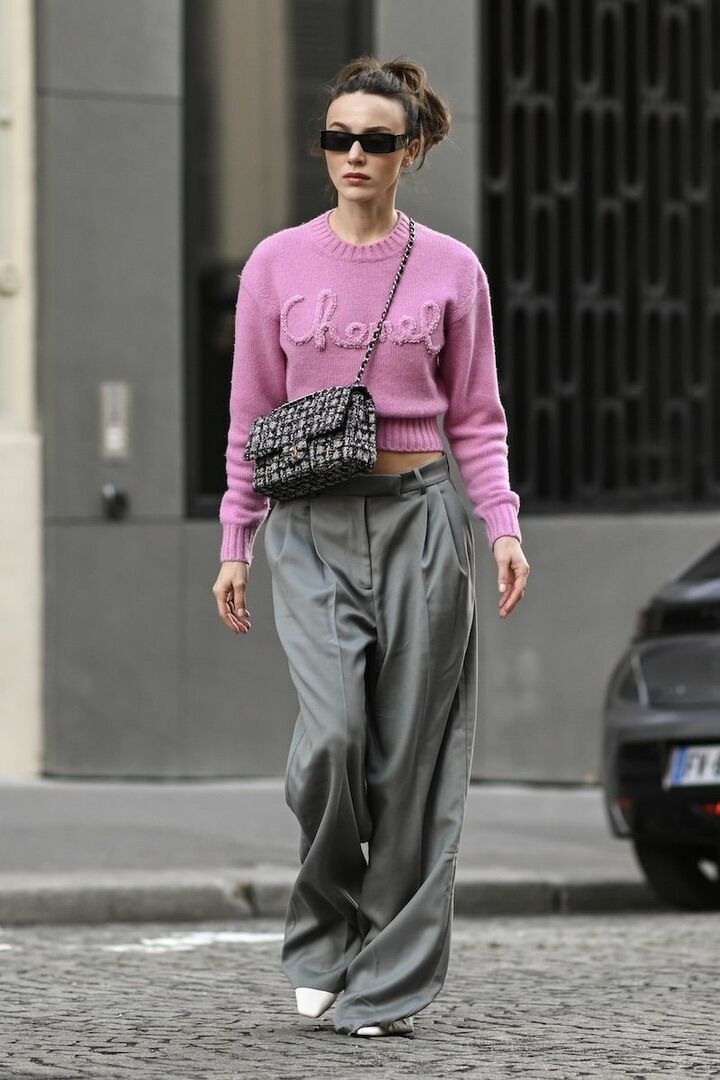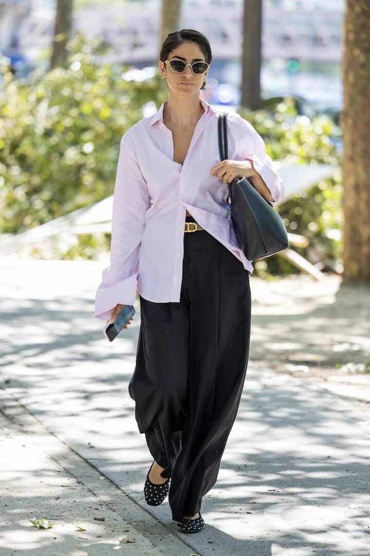 はっと視線を奪うような鮮やかなフューシャピンクを、穏やかで上品なベージュパンツで受け止め強さを中和。しなやかなワイドシルエットを選ぶと、エフォートレスなムードが漂い余裕を感じさせる仕上がりに。