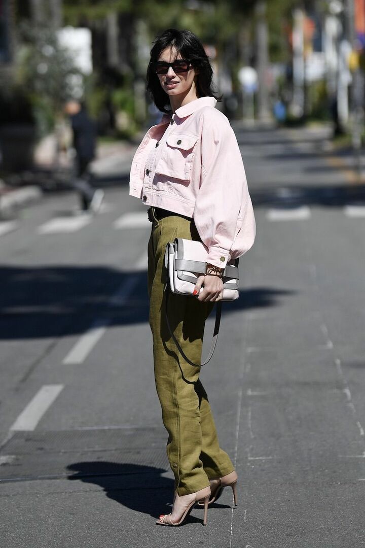 甘い印象のピンクは、くすんだトーンのレザーパンツを選びつつ、カーキのジャケットとバッグを重ねればハンサムに着地。彩度を抑えた着こなしも、辛口なレザーとファーを掛け合わせればモードなセンスが光ります。