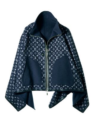 表はネイビー一色、裏はネイビー地の「モノグラム・モチーフ」になったダブル・ファブリック仕立ての「モノグラム インサイド ジップド ケープ」もその代表格。シンプルな着こなしを、一瞬でラグジュアリー・モードに導いてくれる演出力が魅力です。