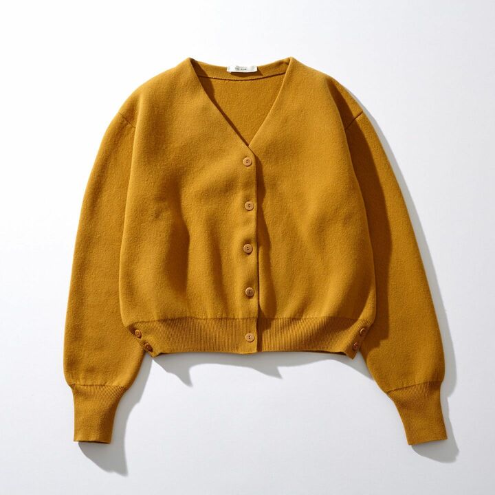 カーディガンのサイドはボタンで開閉できるようなデザインになっており、スタイルに合わせてシルエットを変えられるフレキシブルさがポイント。