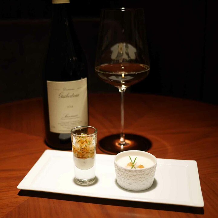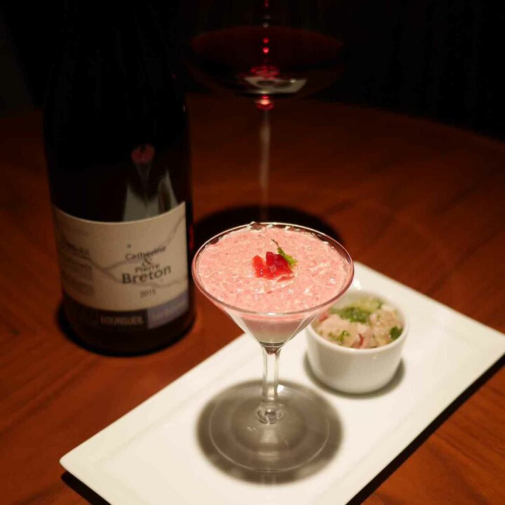 「タイユヴァン」のコンセプトである食とワインの調和を重視し、アミューズやパテなどのおつまみ類はもちろん、プレート料理まで提供。ワインとのペアリングに細部までこだわった料理をともに味わうことでワインの楽しさや奥深さをより実感できるだろう。