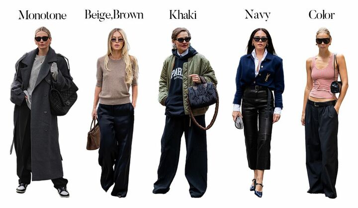 汎用性の高い黒のパンツは、どんな色も受け止めてくれるというのが最大のメリット。黒や白、グレーなどのモノトーンを合わせればシックな印象に。またベージュやブラウン、ネイビーなら上品さが漂い、カーキを掛け合わせるとほんのり辛口な表情にまとまります。ときにはピンクやオレンジ、赤など、フレッシュなカラーを組み合わせてお洒落の幅を広げましょう。